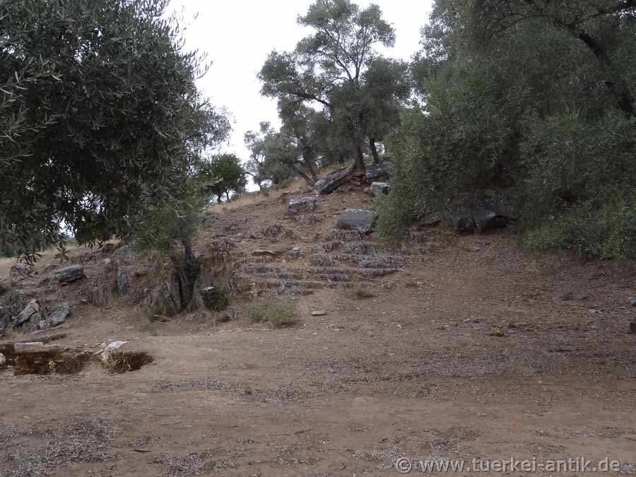 Euromos was the most important city in Caria after the neighbouring town of Mylasa (today Milas), about ten kilometres away. In the middle of the 5th century B.C. Euromos was a member of the Delhi-Atttian Sea Alliance. According to a local plaque, the name of the city in the 5th century BC was "Cyramos" or "Hyramos". |
