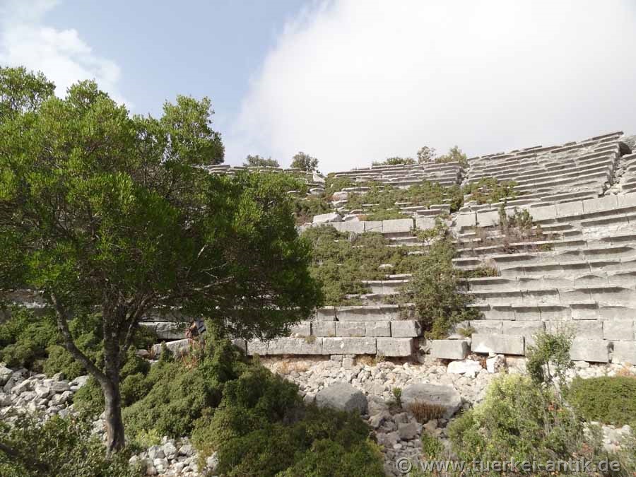 The Hellenistic theatre of the ancient city of Kyaneai was built on a natural slope and, like the entire city, has not yet been extensively explored and excavated. The theatre, dating from the 2nd century BC, is undoubtedly Kyaneai's best preserved building. |