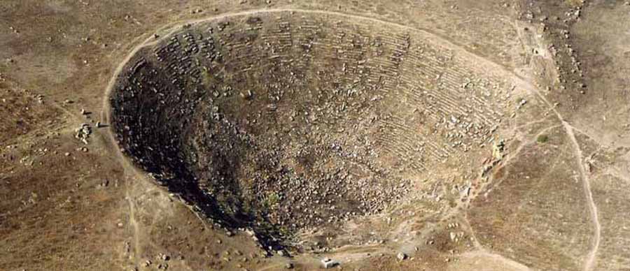 The North Theatre was built in the 2nd century AD. The theatre is completely built into the slope with a view to the northeast on the Lykos plain. Although many rows of seats have slipped from their original positions and some have been removed for limestone extraction, 19 rows of seats can be found in the lower tier (ima cavea) and 27 rows of seats in the upper tier (summa cavea). |