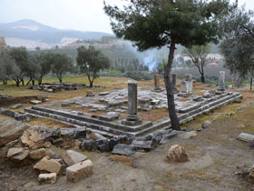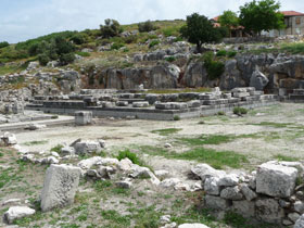 Emperor temple on the state agora erected: third quarter of the 1st century B.C. Dimensions: Stylobat 14.50 x 22.20 m Peristasis: 6 x 10 |
